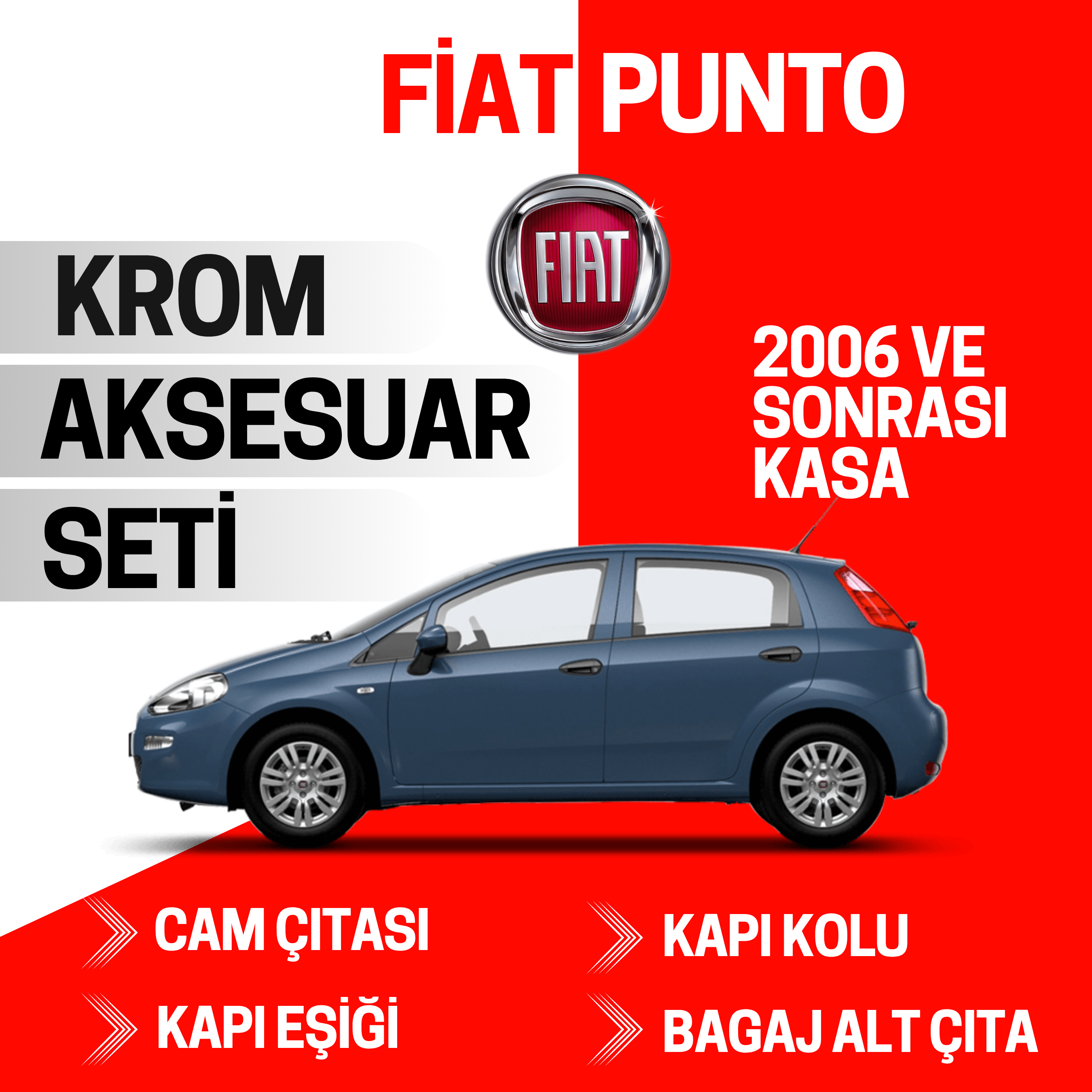 • Sizin için özenle hazırladığımız Fiat Punto için krom aksesuar seti!