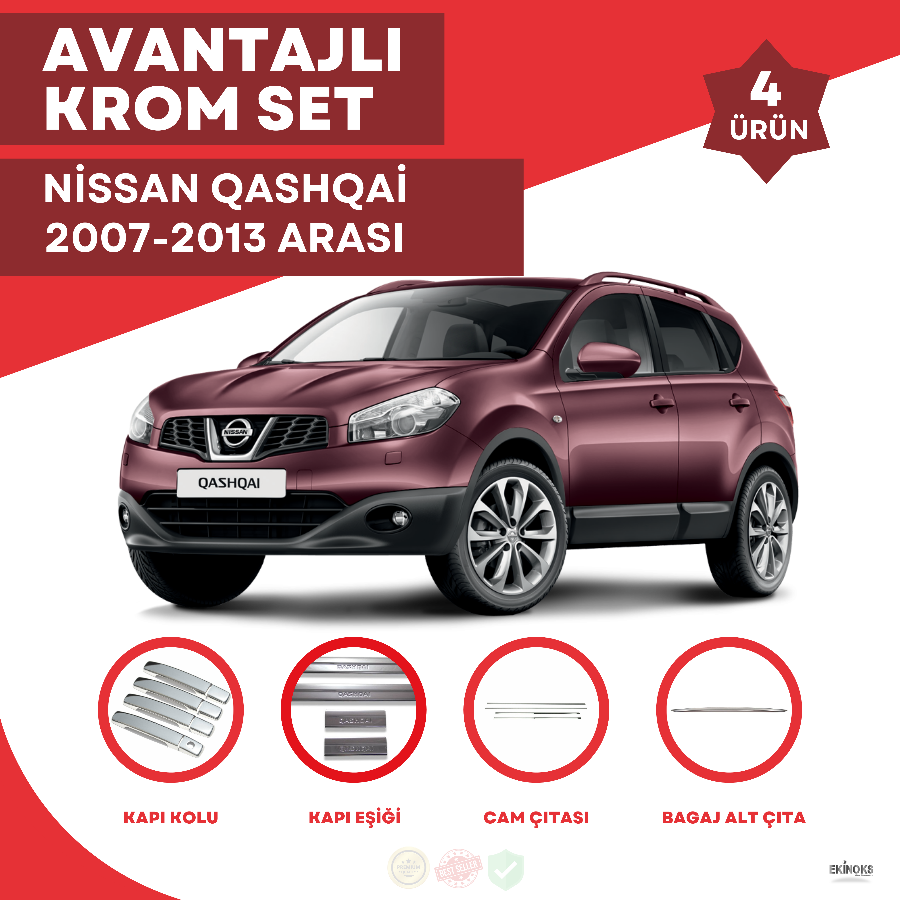 Nissan Qashqai aracınızı krom aksesuarlarımızla kişiselleştirin ve tarzınıza zarif bir vurgu ekleyin. Uygun fiyatlarımızla bu seti sunuyoruz, böylece aracınıza güzel bir görünüm sağlamanın keyfini çıkarabilirsiniz.