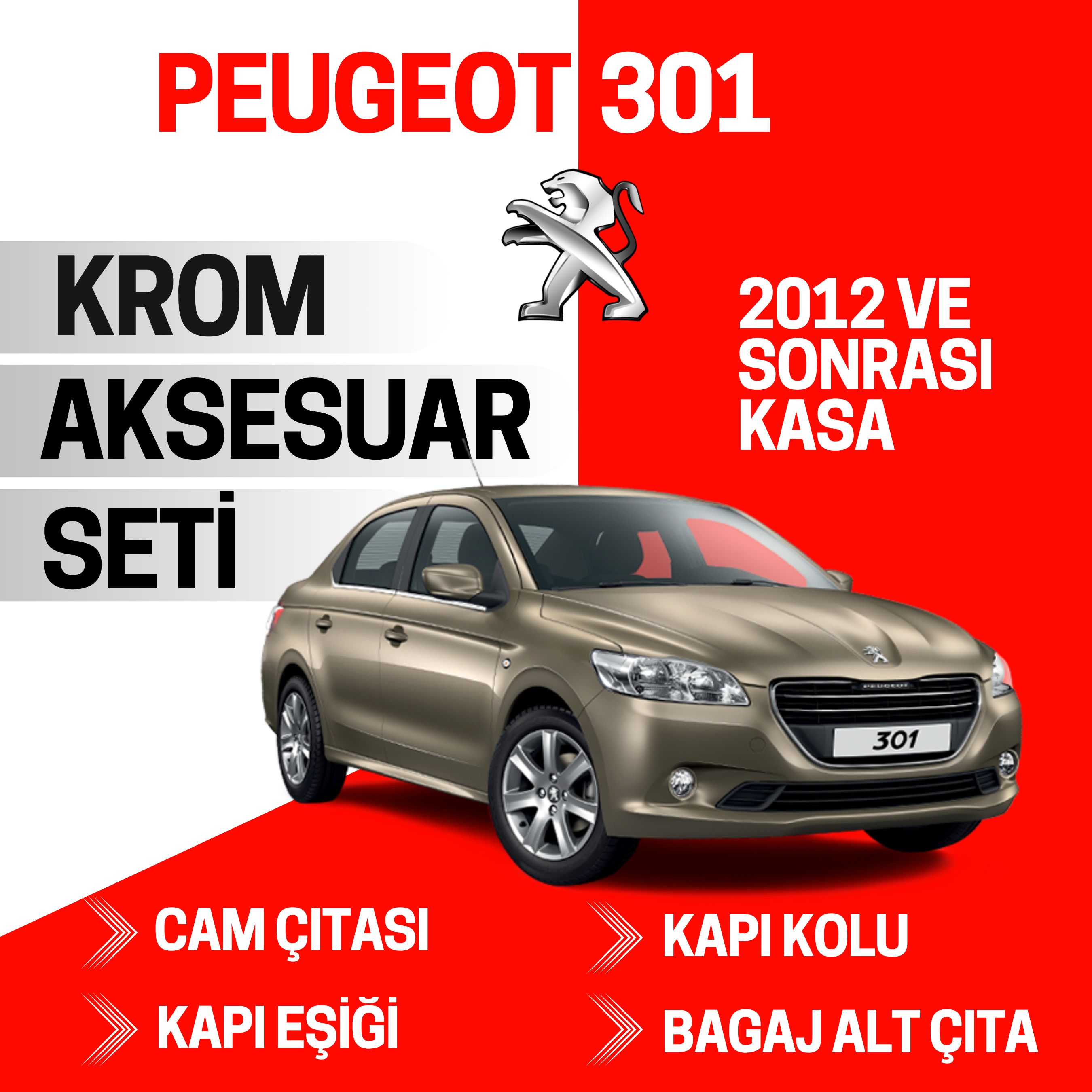 • Sizin için özenle hazırladığımız Peugeot 301 için krom aksesuar seti!